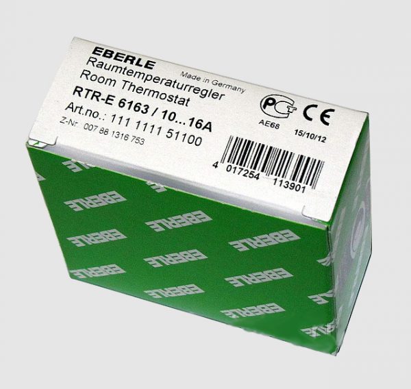 Терморегулятор EBERLE RTR-E 3563 представляет собой комнатный электромеханический термостат, с кнопкой включения.