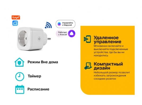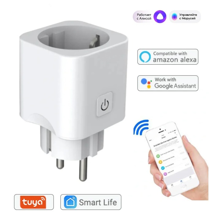 Наша умная розетка поддерживает открытый протокол и может работать с Яндекс Алисой, Amazon Alexa, Tuya и другими. Для подключения просто сканируйте QR код со смартфона на корпусе вилки, система сама предложит последовательность подключения, а общее время не займет более 5 минут.